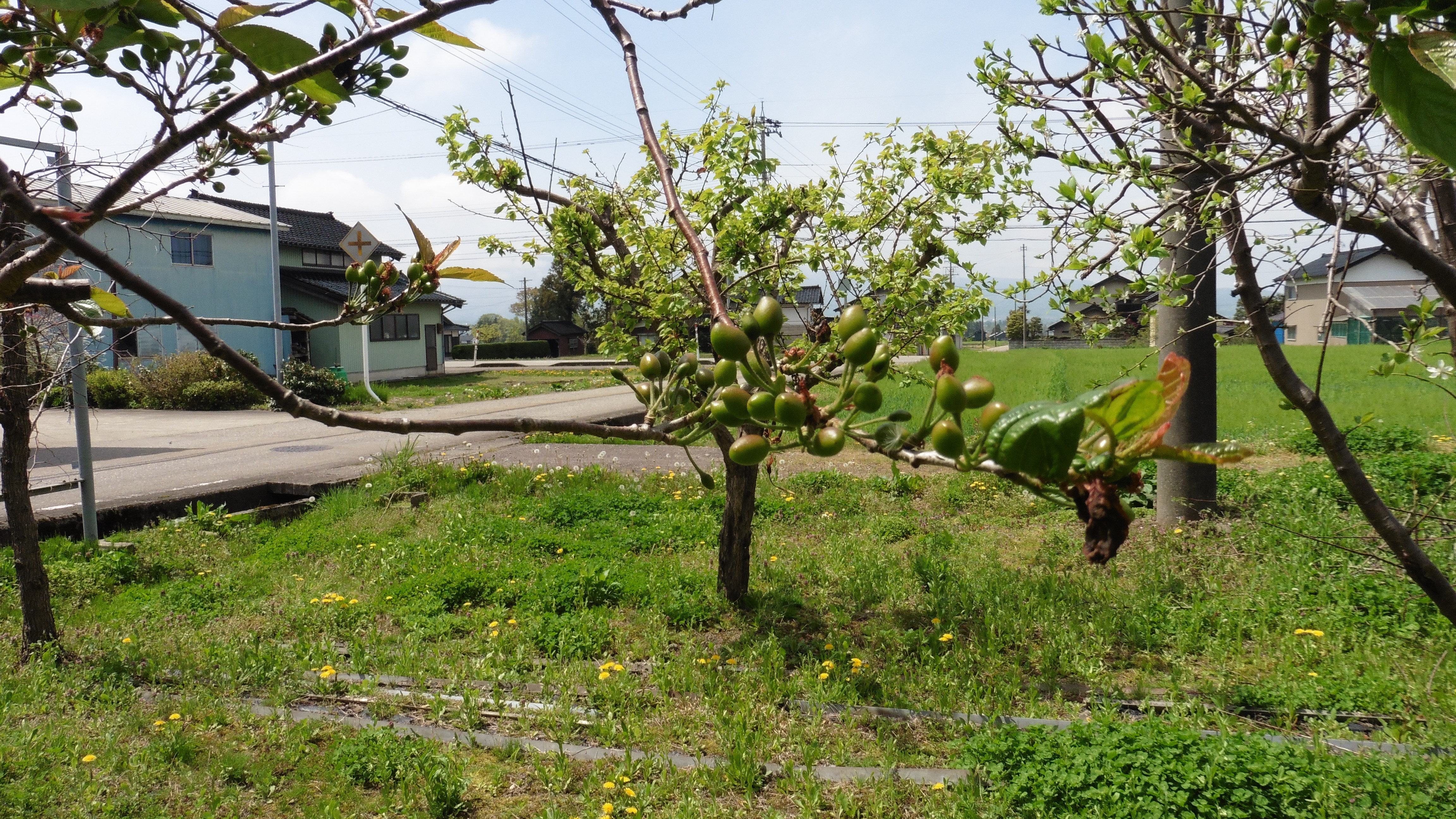 一部の木は花が咲き終わり、実を付けてますね。