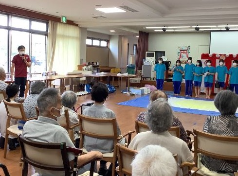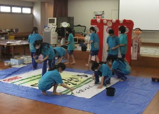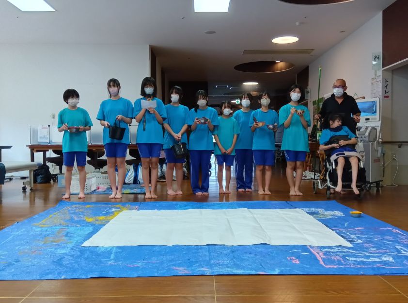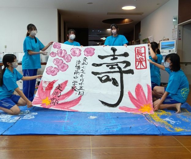 敬老の日に、津幡南中学校美術部の皆様が書道パフォーマンスを披露してくださいました。この時期の恒例行事で、中学生との交流を楽しんでいます。