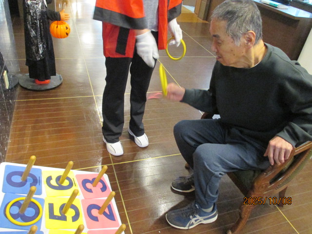 的当てや輪投げで盛り上がり、皆様で作られた作品を楽しみました。この日の昼食は普段食べられない屋台風のメニューでとても嬉しそうでした!