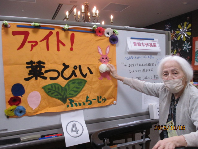 11月の上旬には津幡町のシグナスにて文化展もございました。通所リハビリからはフェルトで作成した花畑を出品しました。