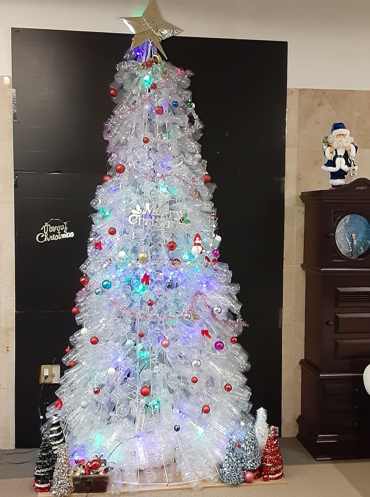 Xmasにむけてツリーの準備です。ふぃらーじゅでは毎年ロビーにてペットボトルツリーを飾っております。