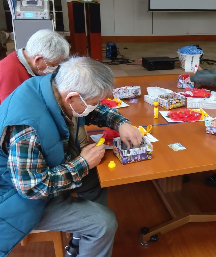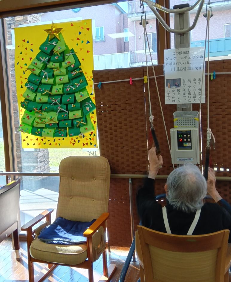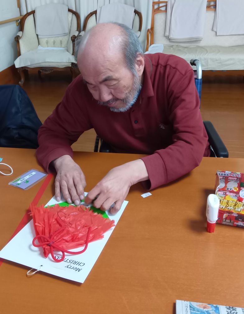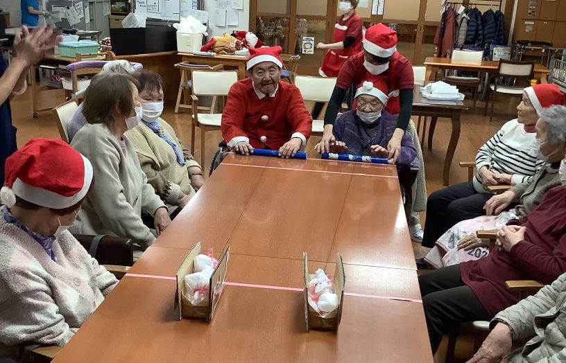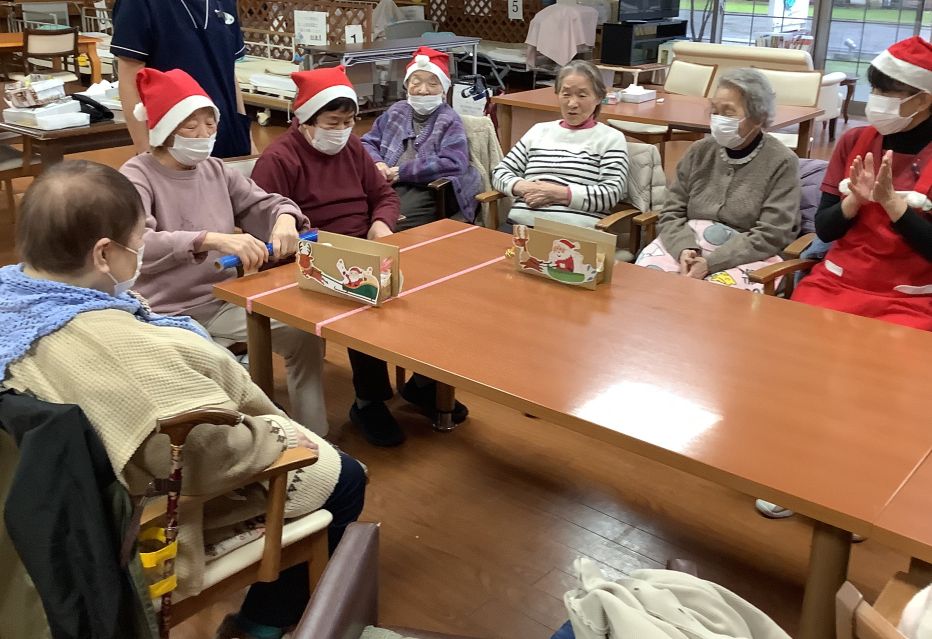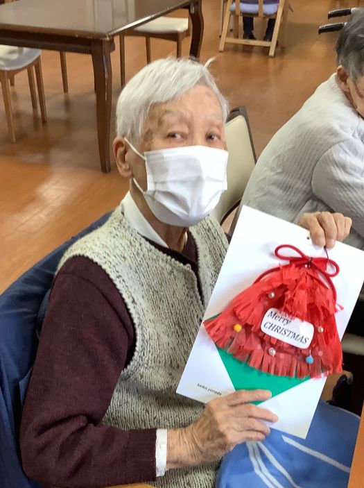 12月はクリスマス会を開催しておりました。みんなで『きよしこの夜』や『赤鼻のトナカイ』を歌ったり、手作りのツリーやケーキで盛り上がっていました。