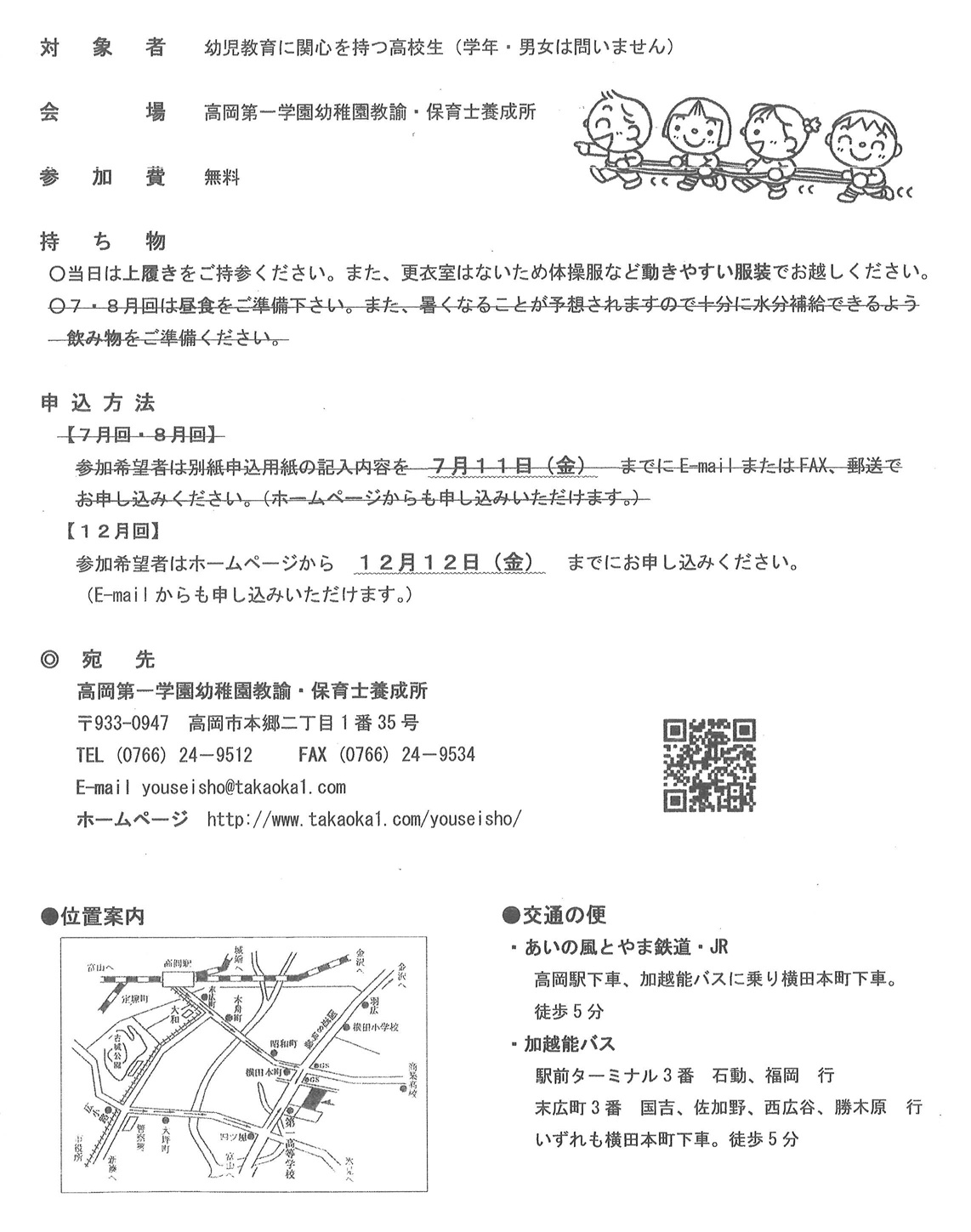 (要項)第42回 高校生のための幼児教育体験講座(12月回)