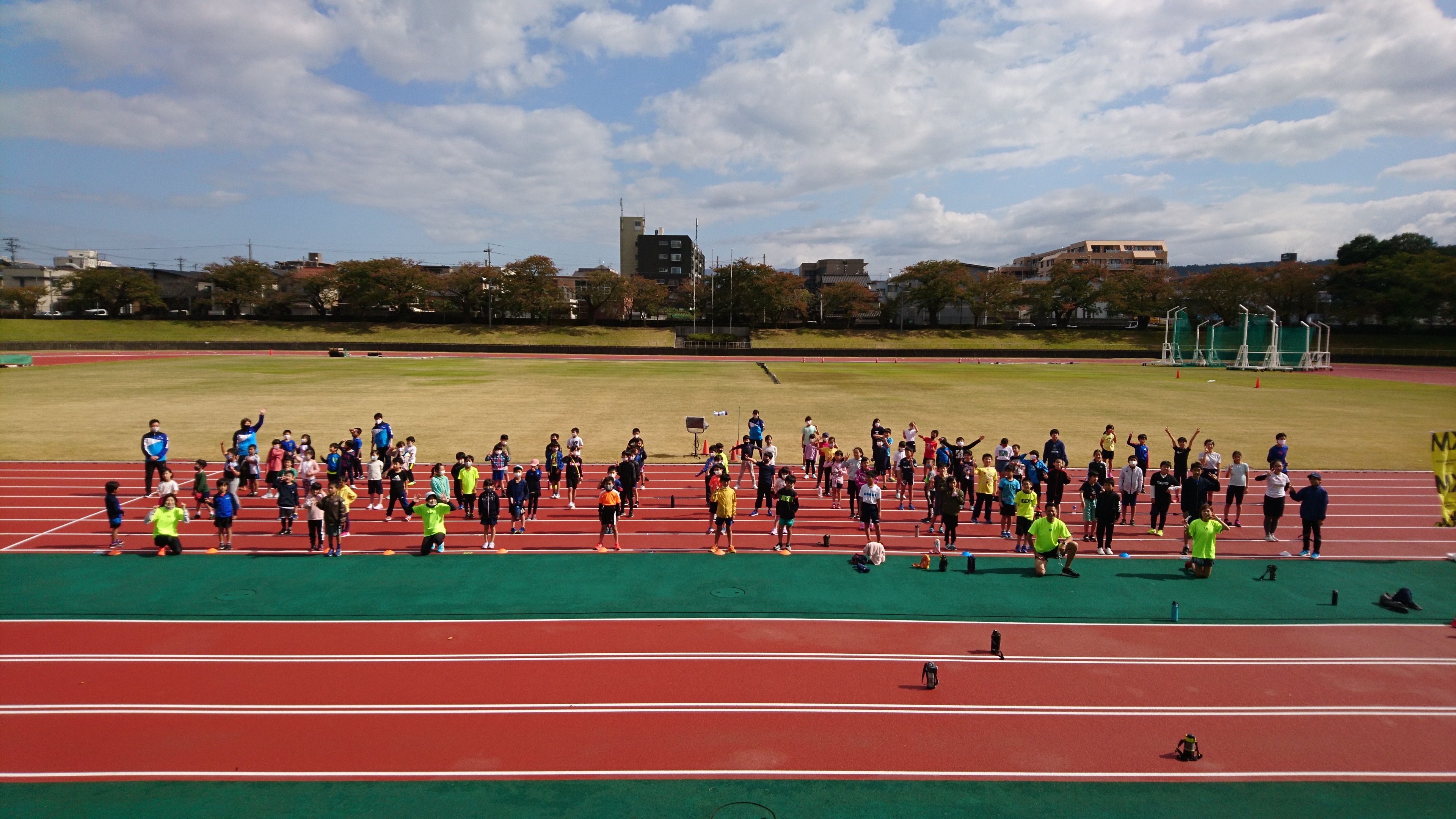 本日10月25日(日)開催の「元気に!楽しく!走ろう!KMランニングレッスンfor KIDS」は、予定通り、金沢市営陸上競技場(金沢市弥生3-5-1)にて開催します。
