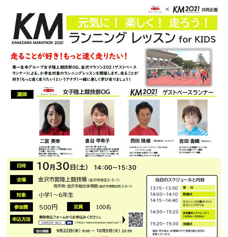 石川県内のまん延防止等重点措置が解除されたこと、大都市圏をはじめ全国で緊急事態宣言等が解除され、県内外において感染者数が減少傾向であること、また、今後もワクチンの接種が広くすすむ見込みであることから、金沢マラソンは、感染防止対策を徹底し、10月31日(日)に開催することを決定しました。
