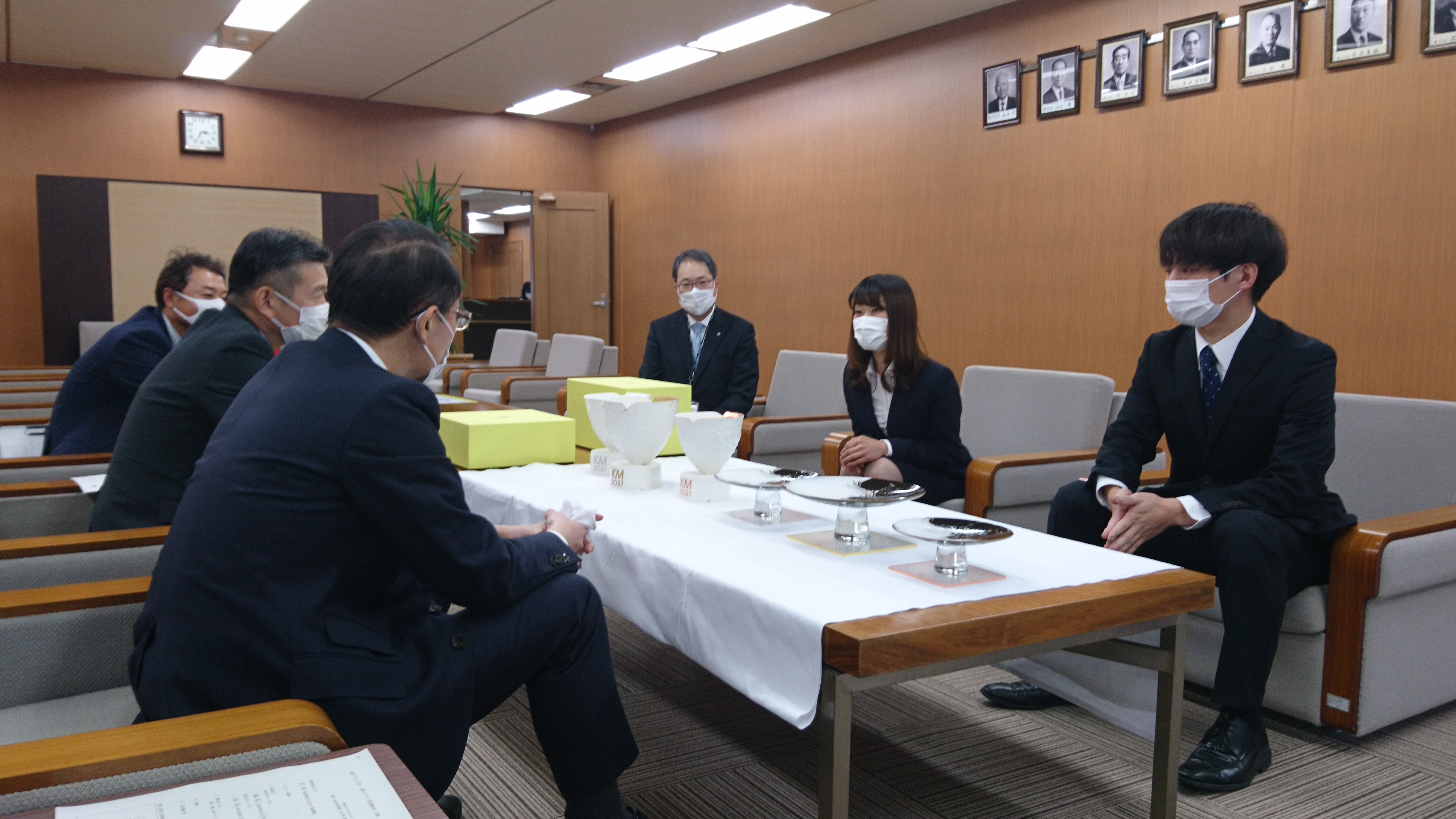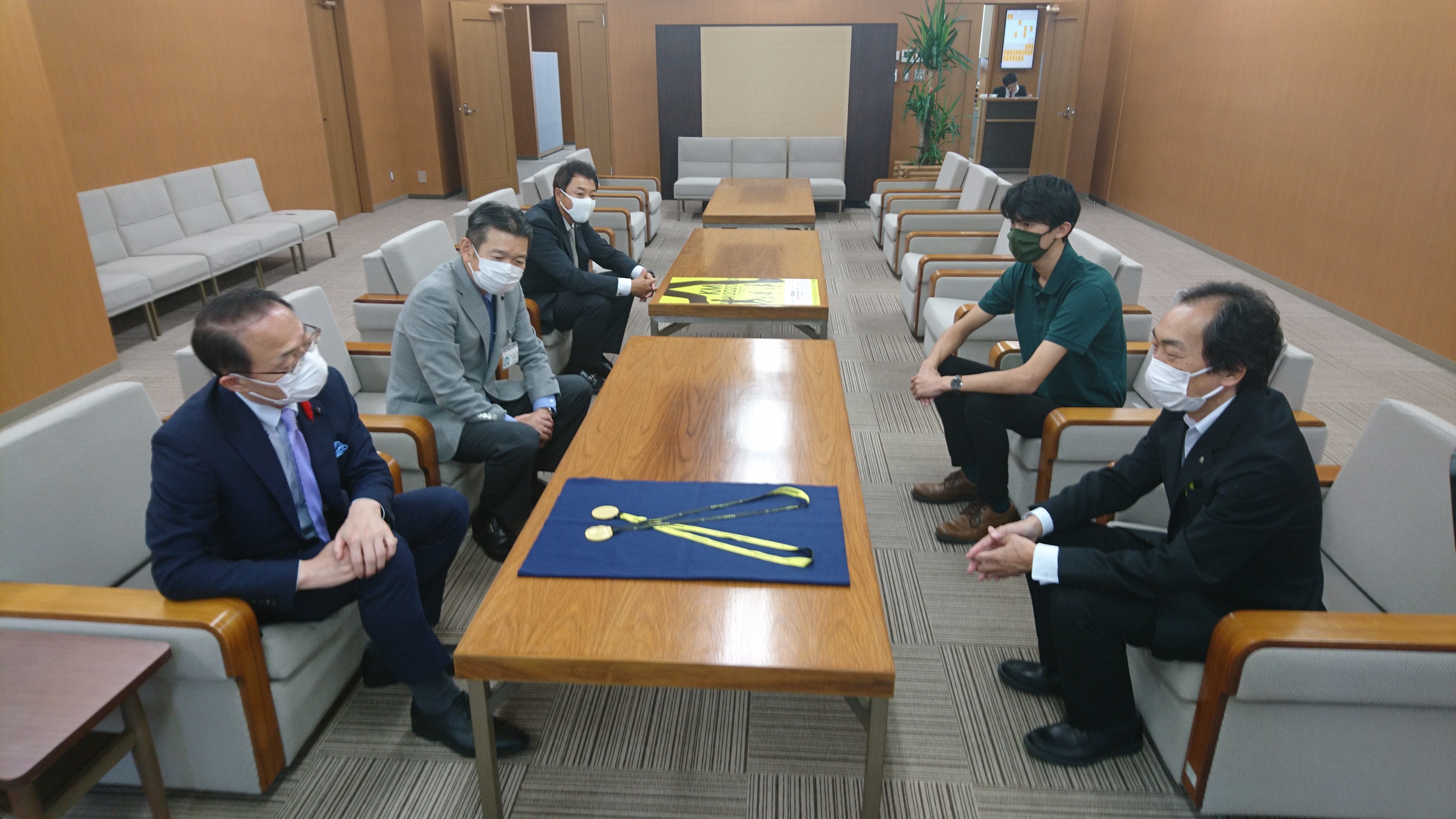 山野会長へ完成報告会が行われ、木下さんよりメダルの発表や、コンセプトの説明をいただきました。