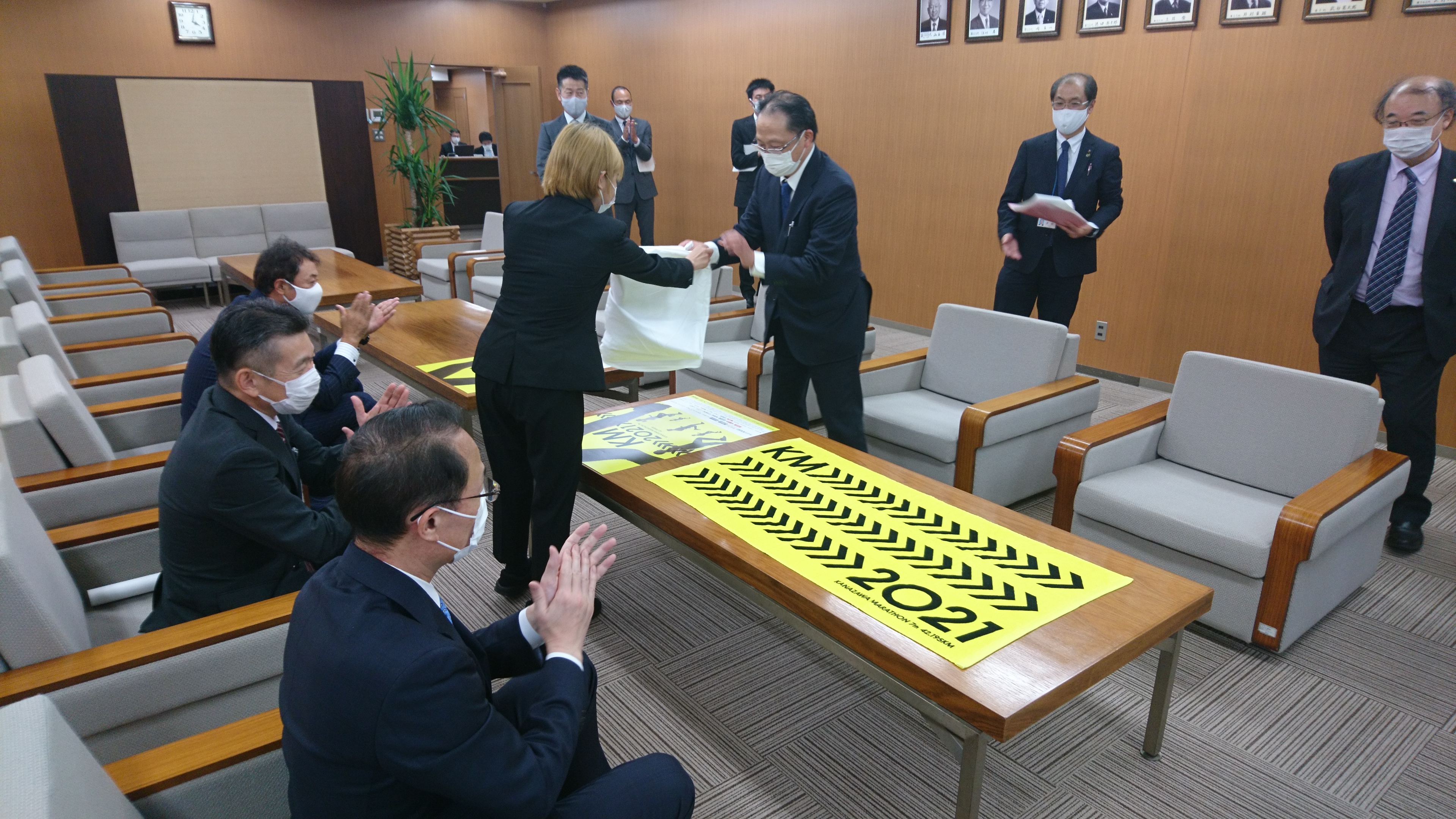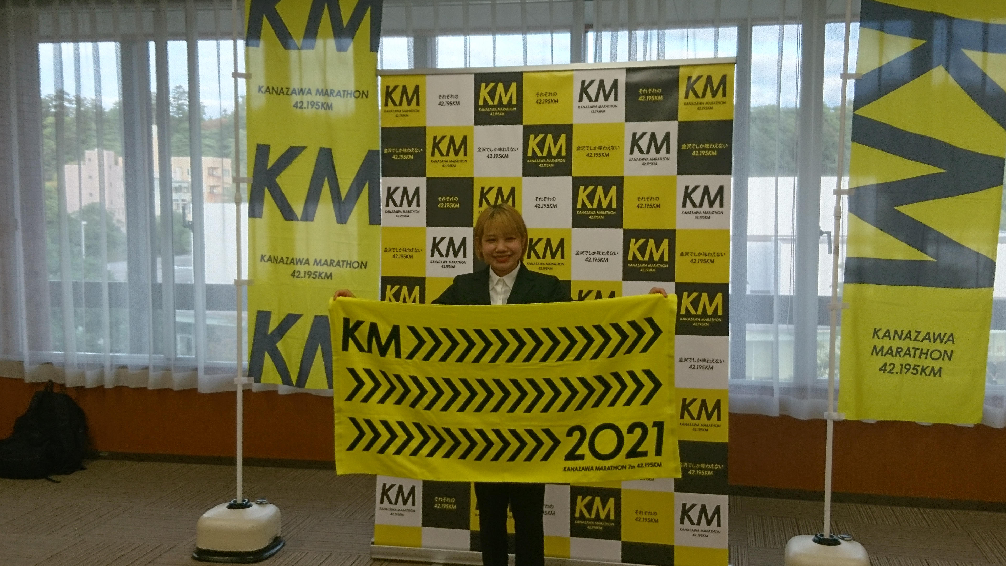 多くの方の目を引くよう大きくシンプルなデザインとなっており、大会当日まで金沢マラソン2021をPRしていきます!!
