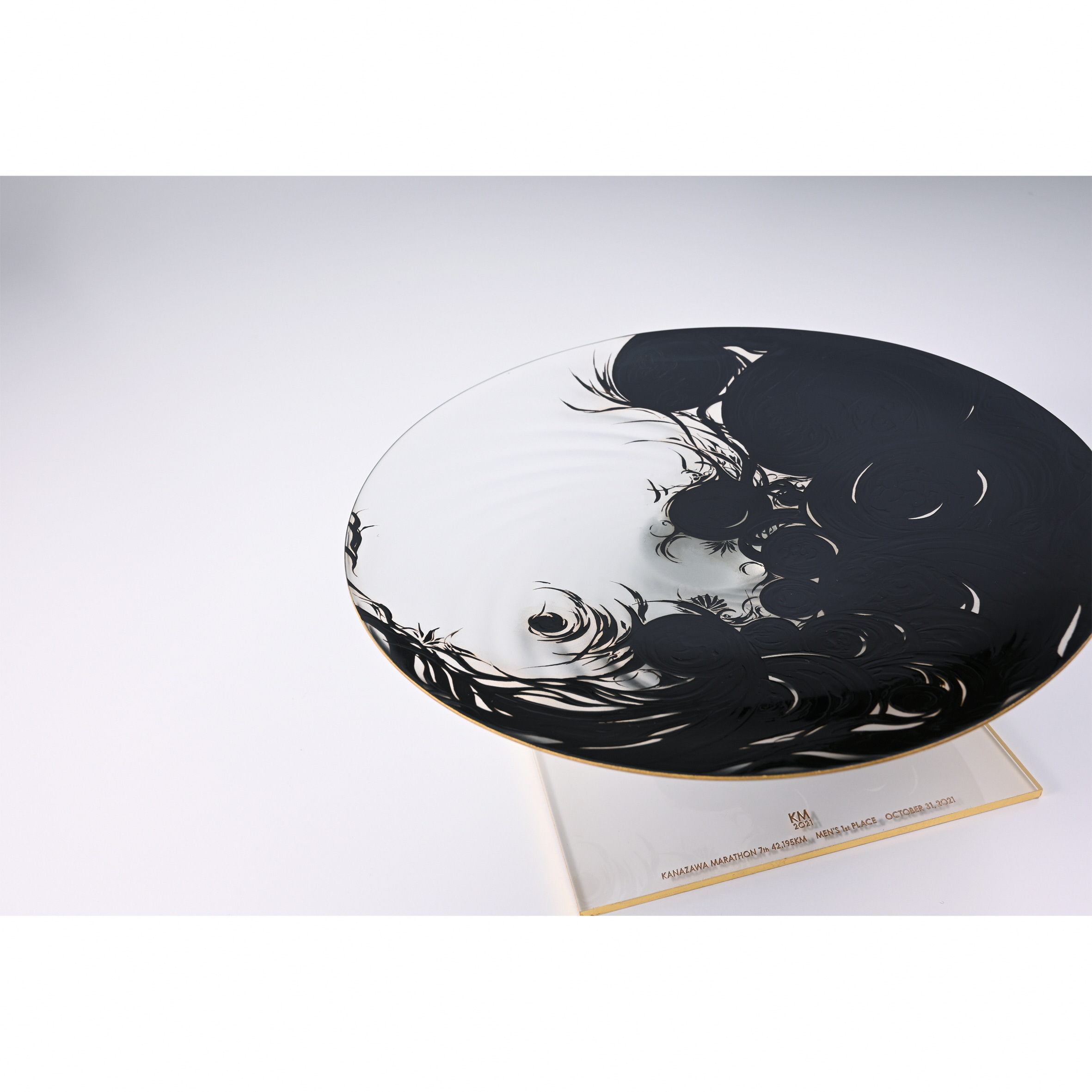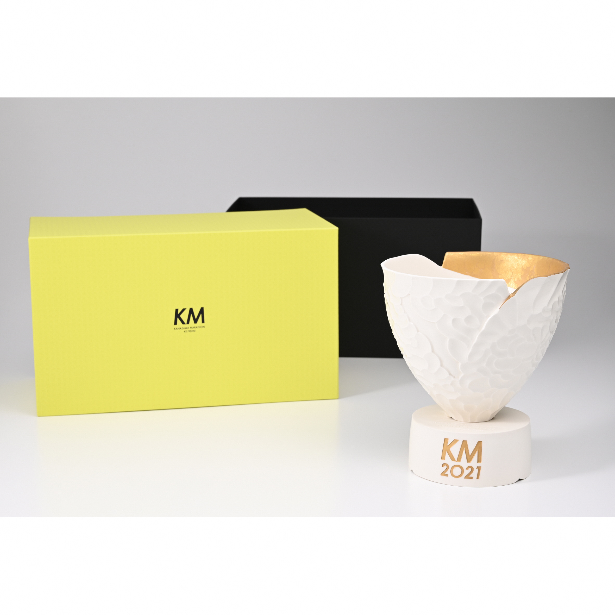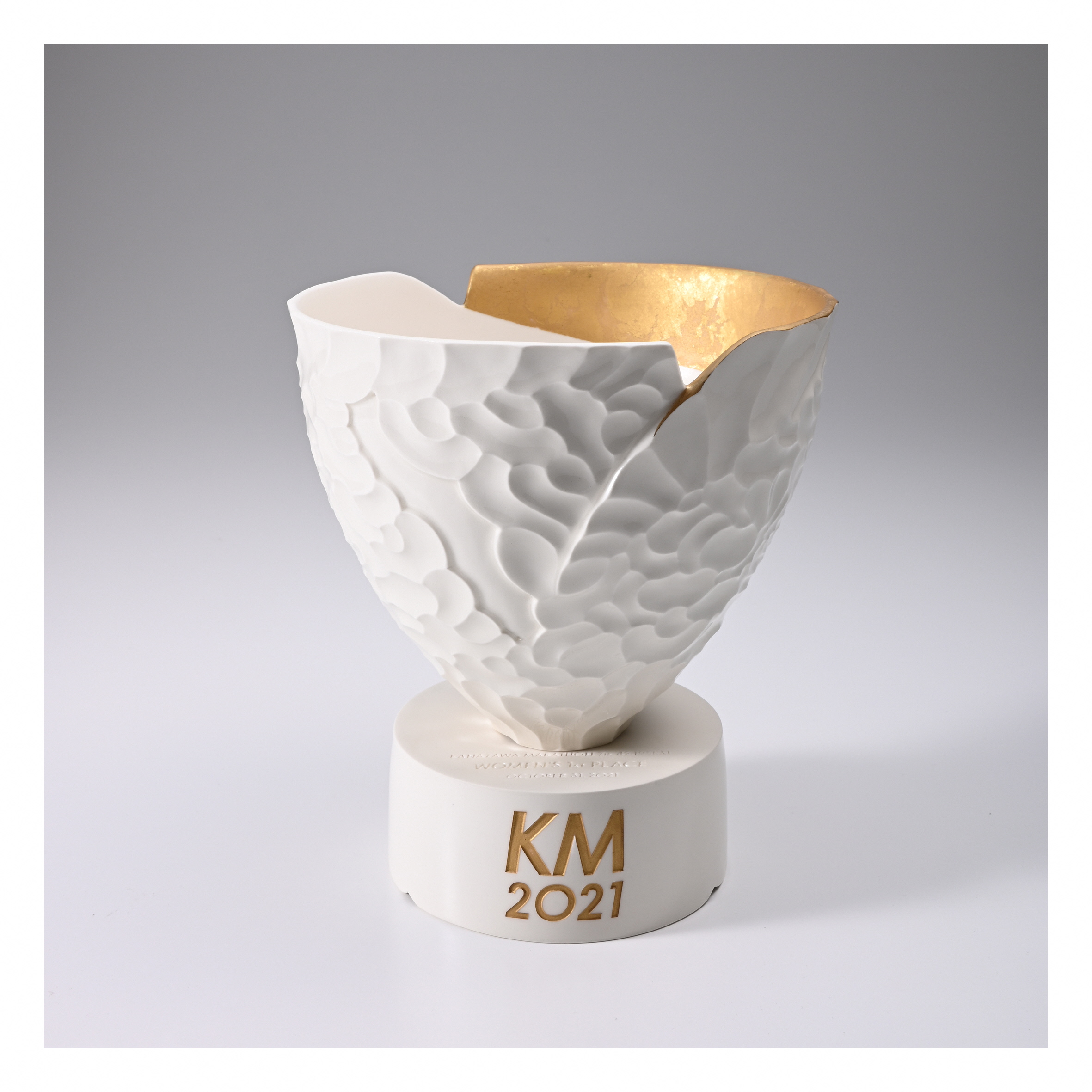 ランナーと走ることによって生まれる風の形を抽象化し、見る時間や環境により表情が変わる滑らかな起伏によって、光の陰影で美しいシルエットに表現した。色は42.195kmの完走を讃えるゴールドとし、造形は日本の引き算の美学に基づいたシンプルな美しさを目指した。