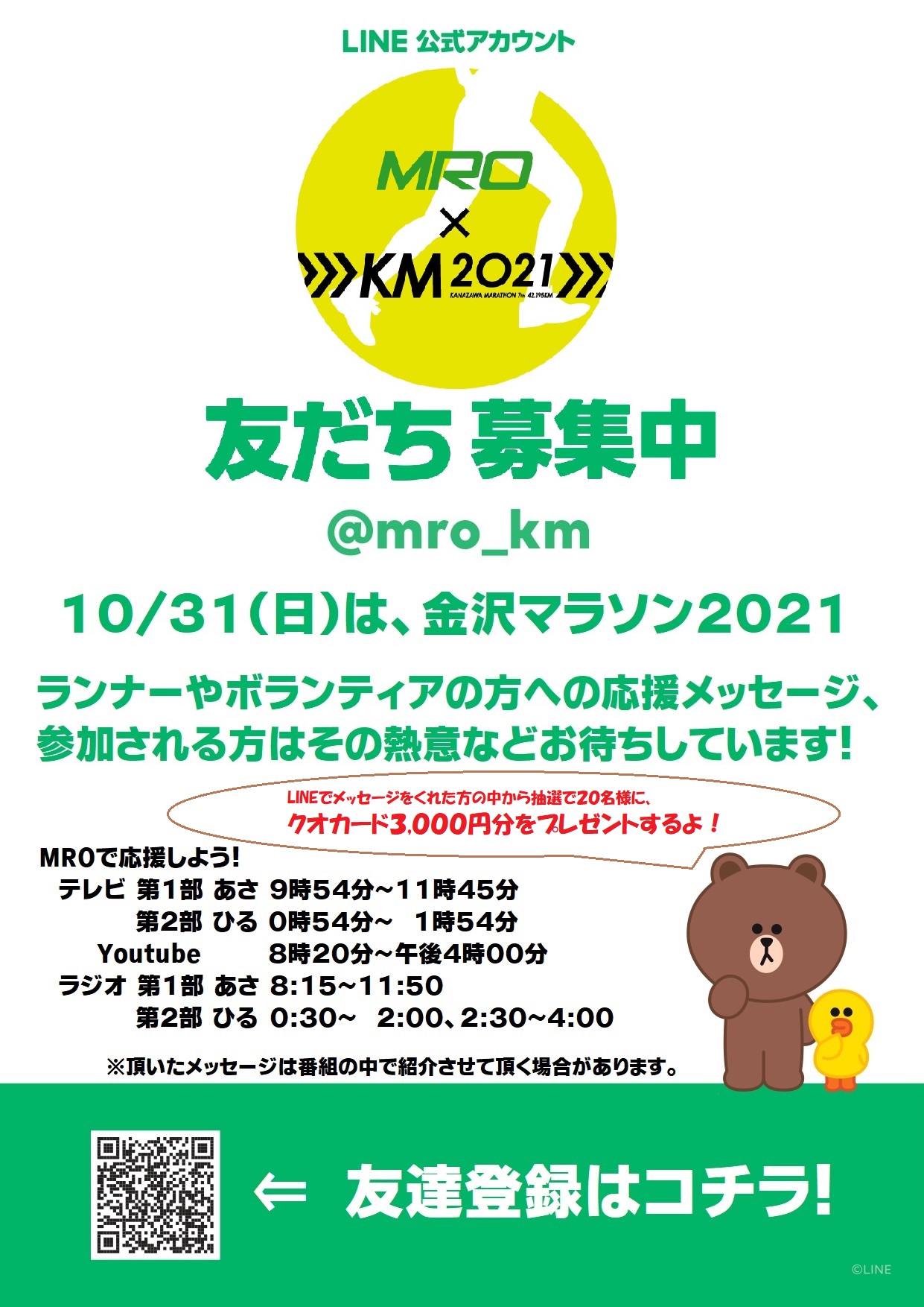 金沢マラソン2021は感染症防止対策のため、一般沿道応援の自粛をお願いしていますが、MRO北陸放送ではリモートによる応援企画を行います!!