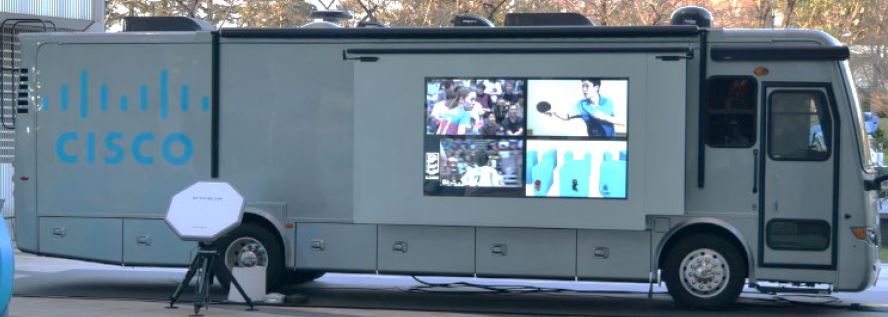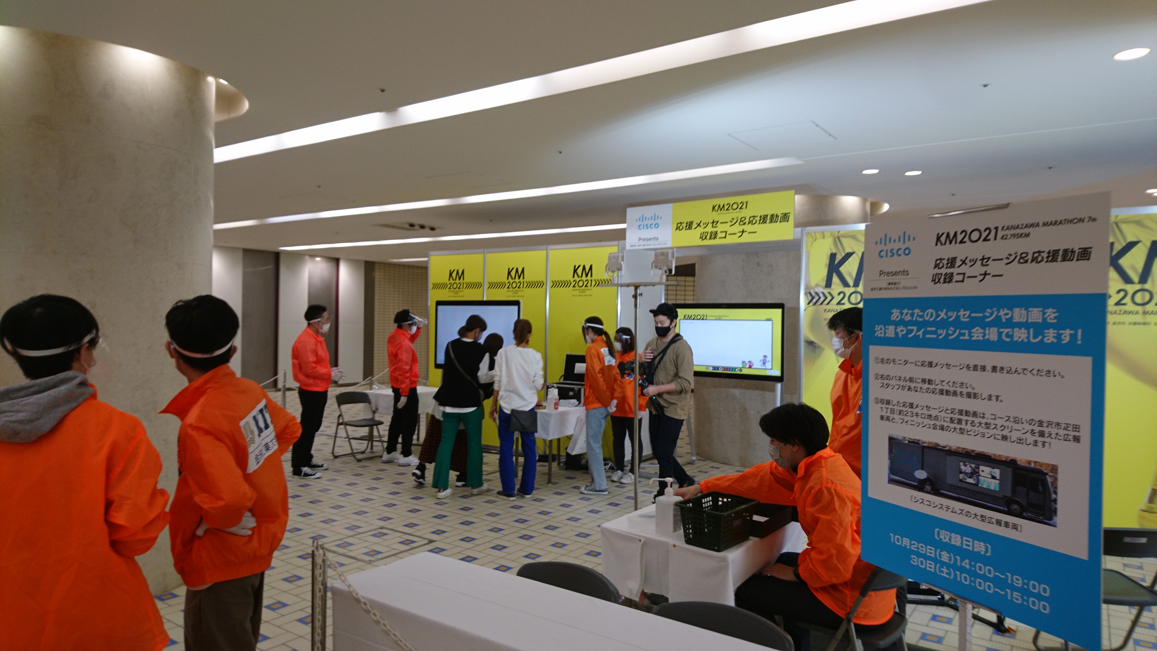 金沢マラソンもてなしメッセ会場で、金沢マラソンオフィシャルパートナーのシスコシステムズが応援メッセージや応援動画の収録を行っています。
