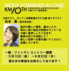 金沢マラソン2024大会ゲストとして、ロンドン五輪柔道女子57kg級 金メダリストの松本薫さん(金沢市出身)が追加決定しました。